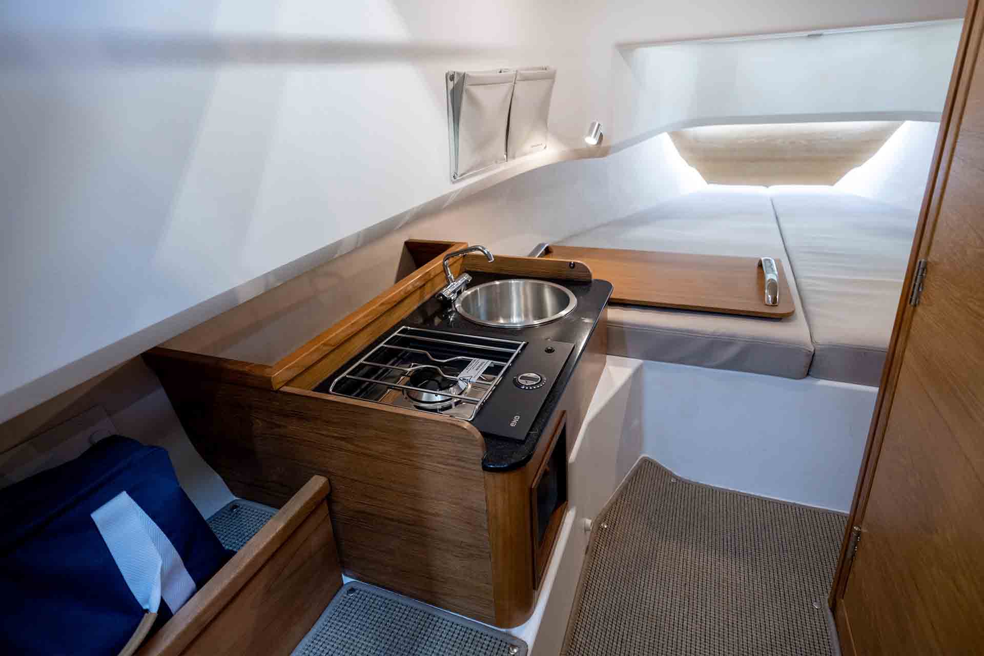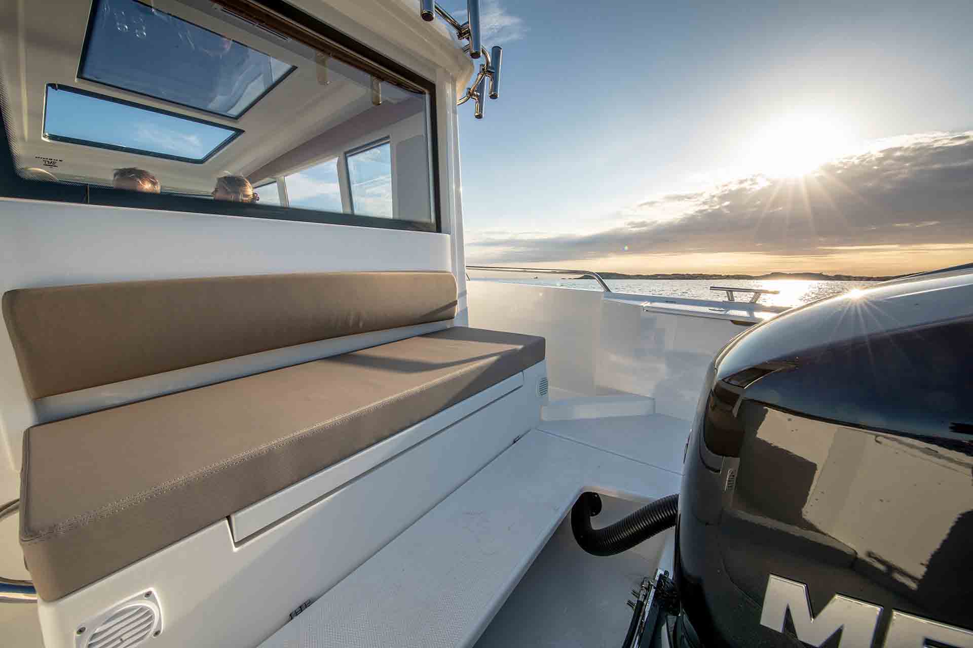 With an emphasis on comfort for longer journeys, the Nimbus Commuter 9 offers features designed with travel in mind. The spacious forecabin and convertible salon accommodate multiple adults and children for overnight trips. When guests want to socialize during the day, a large cockpit passenger sofa and daybed on the foredeck provide a cozy place for drinks and conversation.